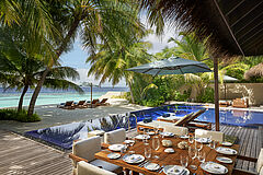 In vier verschiedenen Restaurants werden Ihre Geschmackssinne aufs Vorzüglichste verwöhnt. Starten Sie sanft in den Tag mit einem leckeren Frühstück, das im Open-Air-Restaurant Celsius zubereitet wird. Genießen Sie gutes Essen während sich Ihre Füße in den warmen Sand graben und Sie den endlosen Ozean als atemberaubende Kulisse haben. Während Sie im Salt feinste Küche, die die Aromen des Meeres serviert, über dem Wasser genießen, können Sie am Strand unter einem Dach aus Kokospalmen traditionelle Pizzen im Fogliani's schlemmen. In der Spa-Küche Raw, mit Bar über dem Riff, erleben Sie einzigartige Geschmackserlebnisse mit intensiven Aromen und einem gigantischen Blick über das Meer. Die Umbar lädt Sie ein, mit einem guten Getränk zu entspannen und die Zehen im Sand zu vergraben. Beobachten Sie den roten Sonnenball, wie er im Meer versinkt, während Sie einen leckeren Cocktail genießen. Bei einem privaten Dining auf einer Sandbank mitten im Ozean können Sie den Abend in romantischer Stimmung mit bester Küche ausklingen lassen. Genießen Sie die Zeit und erleben Sie den einzigartigen Rhythmus der Malediven.