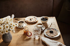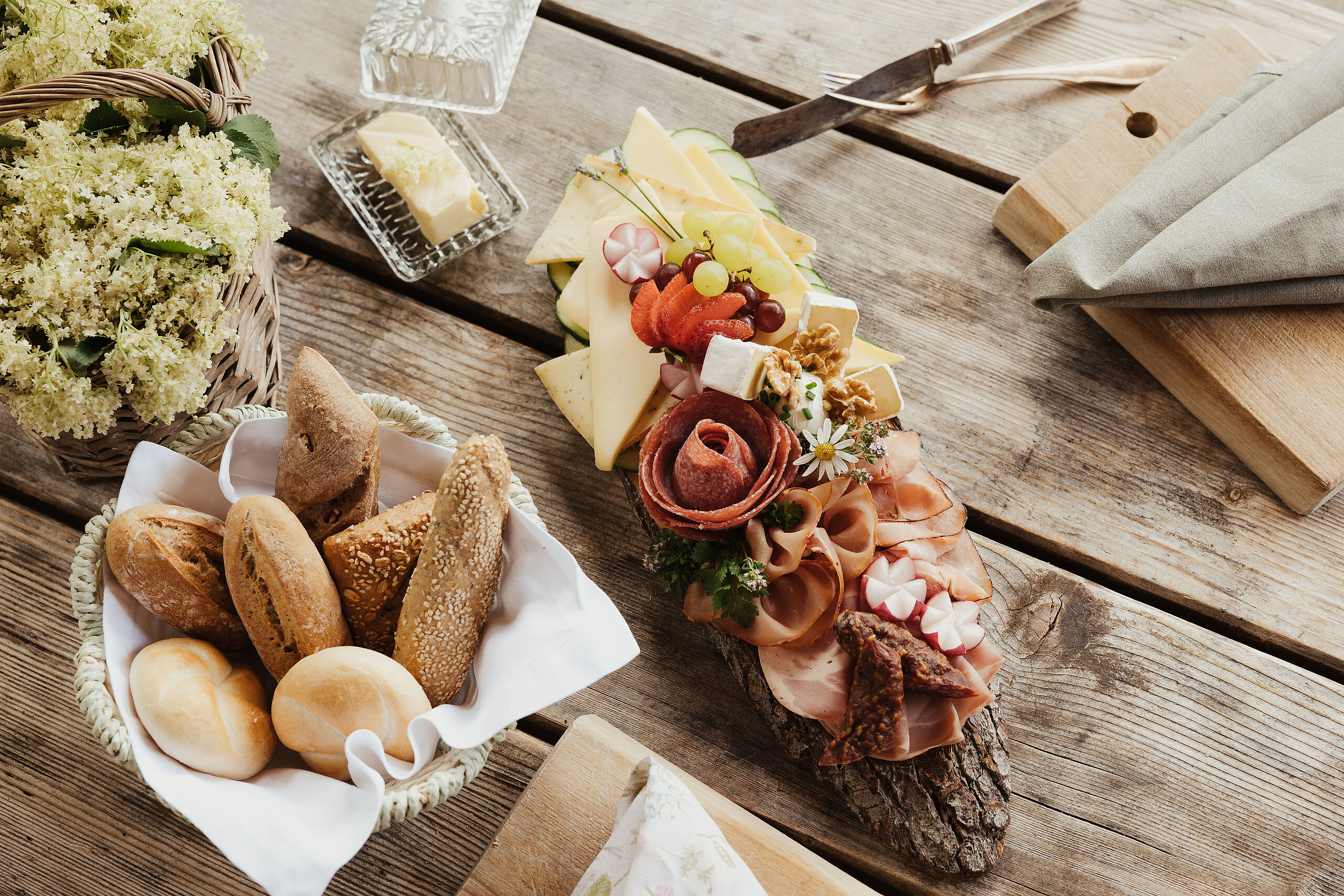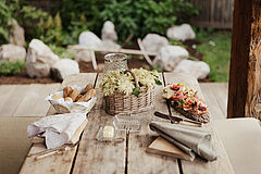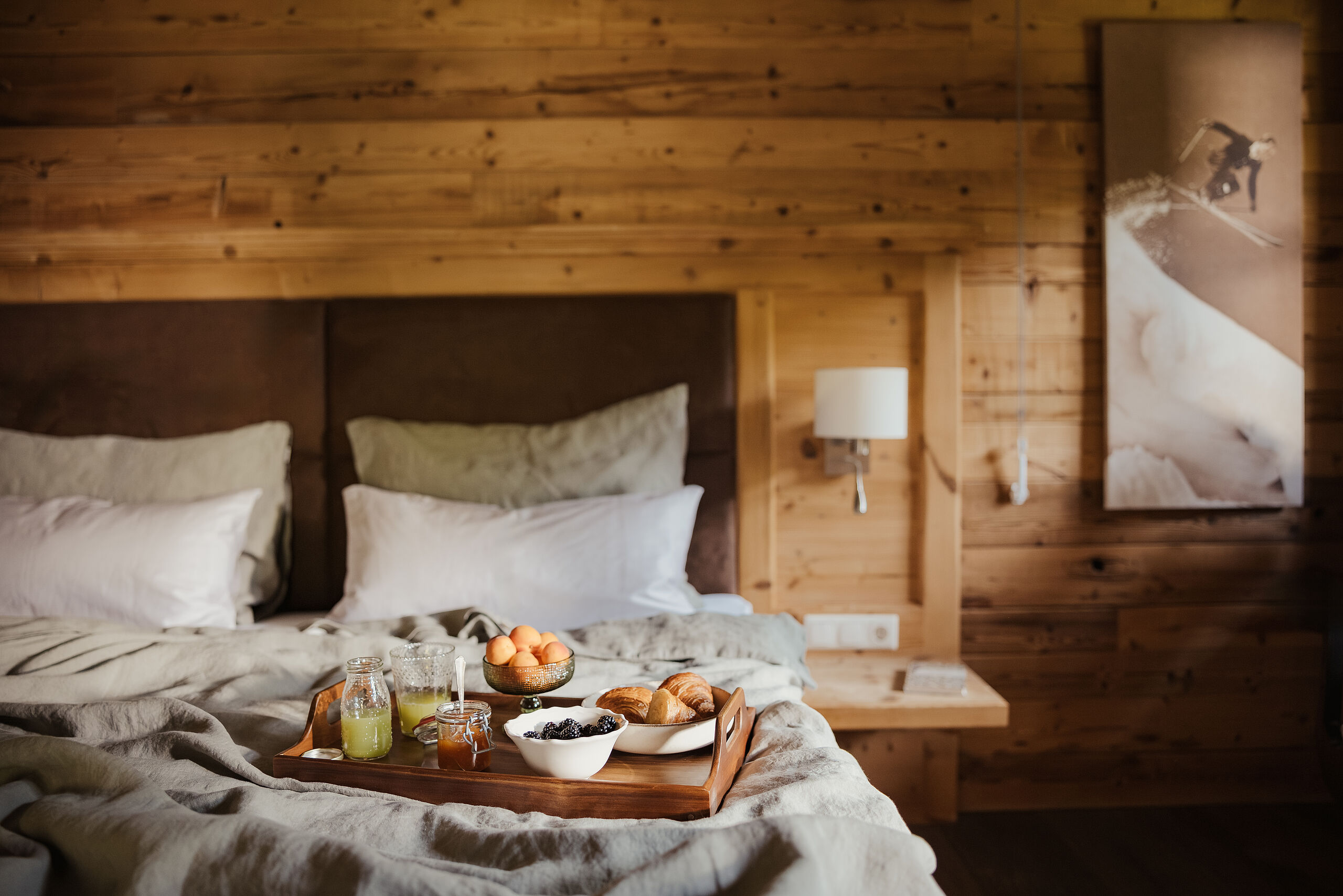 Das à‑la‑carte Schmankerlfrühstück wird jeden Morgen direkt ins Chalet geliefert und bietet eine liebevoll zusammengestellte Vielfalt an frischen Brötchen, Säften, Aufstrichen und regionalen Spezialitäten ganz nach persönlichem Geschmack. Auf Wunsch bereitet das „Eiermobil“ außerdem frisch zubereitete Eierspeisen wie Rührei, Omelette oder Spiegelei – genau so, wie Sie es mögen.