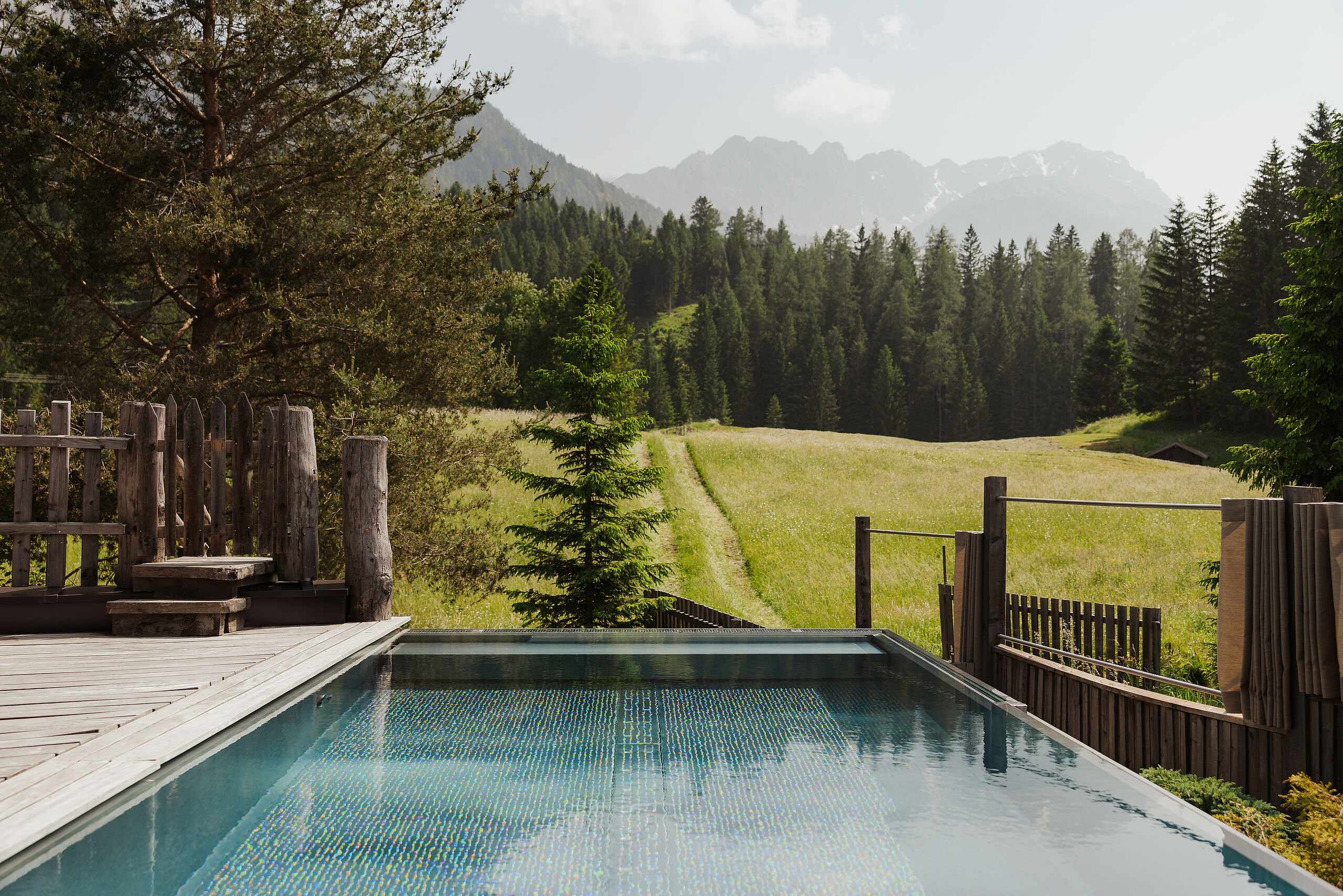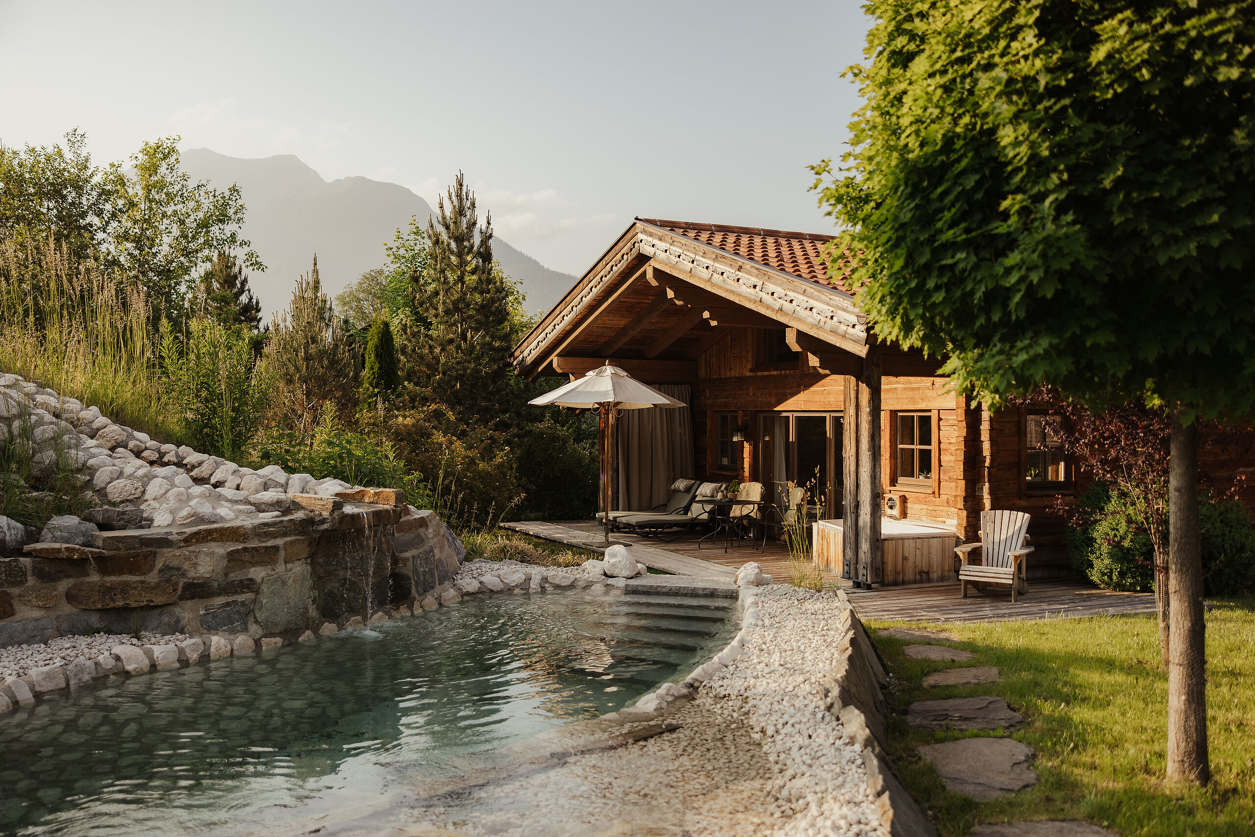 Entspannen mit Ausblick – im neuen Panorama Chalet. Eine Oase für Wellnessliebhaber und Romantiker. Das Plätschern des Wassers im Hot Pot begleitet den genüsslichen Schluck Begrüßungssekt auf der Terrasse.