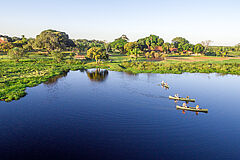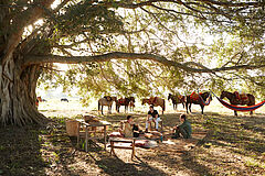 Das Caiman befindet sich auf einer 53.000 Hektar großen ehemaligen Ranch im südlichen Pantanalgebiet des brasilianischen Bundesstaats Mato Grosso do Sul. Das Gebiet, von dem 7000 Hektar zum Naturschutzgebiet erklärt wurden, wartet mit einer faszinierenden Fauna und Flora auf. Das Hideaway liegt nahe der kleinen Stadt Miranda, und von Campo Grande, der Hauptstadt des Bundesstaats, trennen Sie 236 km. Ein eigener Landeplatz bietet die Möglichkeit per Flugzeug anzureisen.