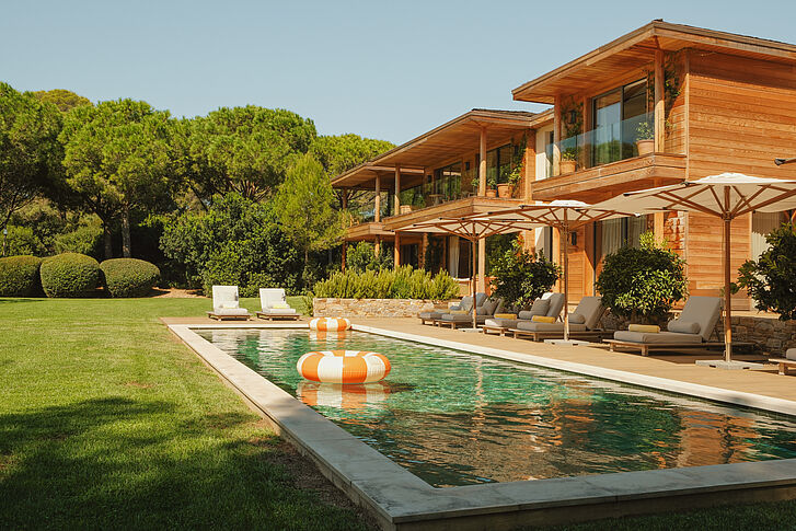 Diese 76qm große Suite ist direkt am Pool gelegen und verfügt über einen eigenen Zugang.