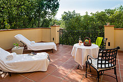 Die Suites Deluxe versprechen Ihnen durch ihre privilegierte Lage ein Höchstmaß an Privatsphäre und eignen sich für drei Erwachsene oder zwei Erwachsene und zwei Kinder. Genießen Sie auf der wundervollen Terrasse ein leckeres Frühstück unter dem strahlend blauen Himmel der Côte d'Azur.