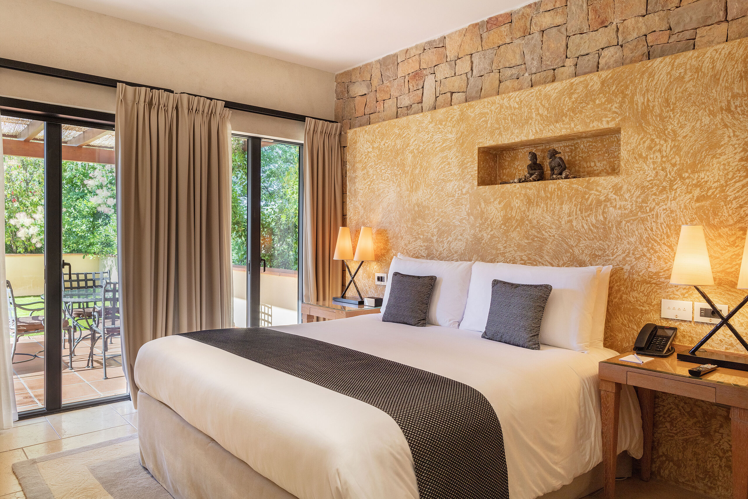 Die insgesamt 115 Suiten und Villen des Terre Blanche wurden im Stil provenzalischer Dorfhäuser errichtet und versprühen mit ihrer liebevollen Dekoration und den warmen Erdtönen den Charme der Region. Jede Unterkunft bietet mindestens ein großes Ankleidezimmer, eine private Terrasse sowie ein edles Marmor-Badezimmer mit Badewanne, separater Dusche und Doppelwaschbecken.