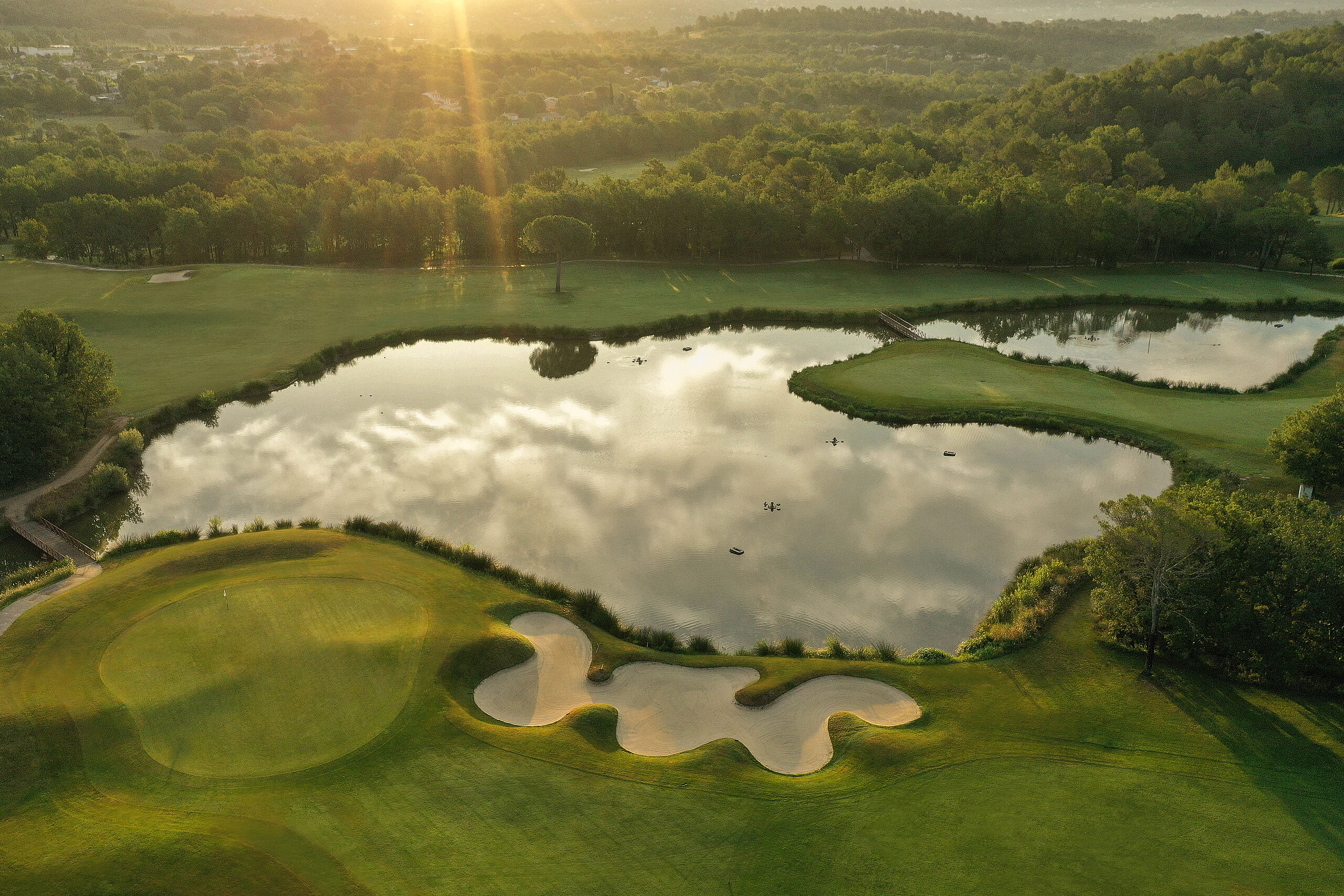 Für Golfenthusiasten bietet das Resort zwei herausragende 18-Loch-Championship-Plätze, Le Château und Le Riou, eingebettet in die sanfte Hügellandschaft der Provence. Beide Kurse verbinden technische Herausforderungen mit beeindruckenden Panoramablicken. Ergänzt wird das Angebot durch ein modernes Golf Performance Center für Spieler aller Spielstärken.