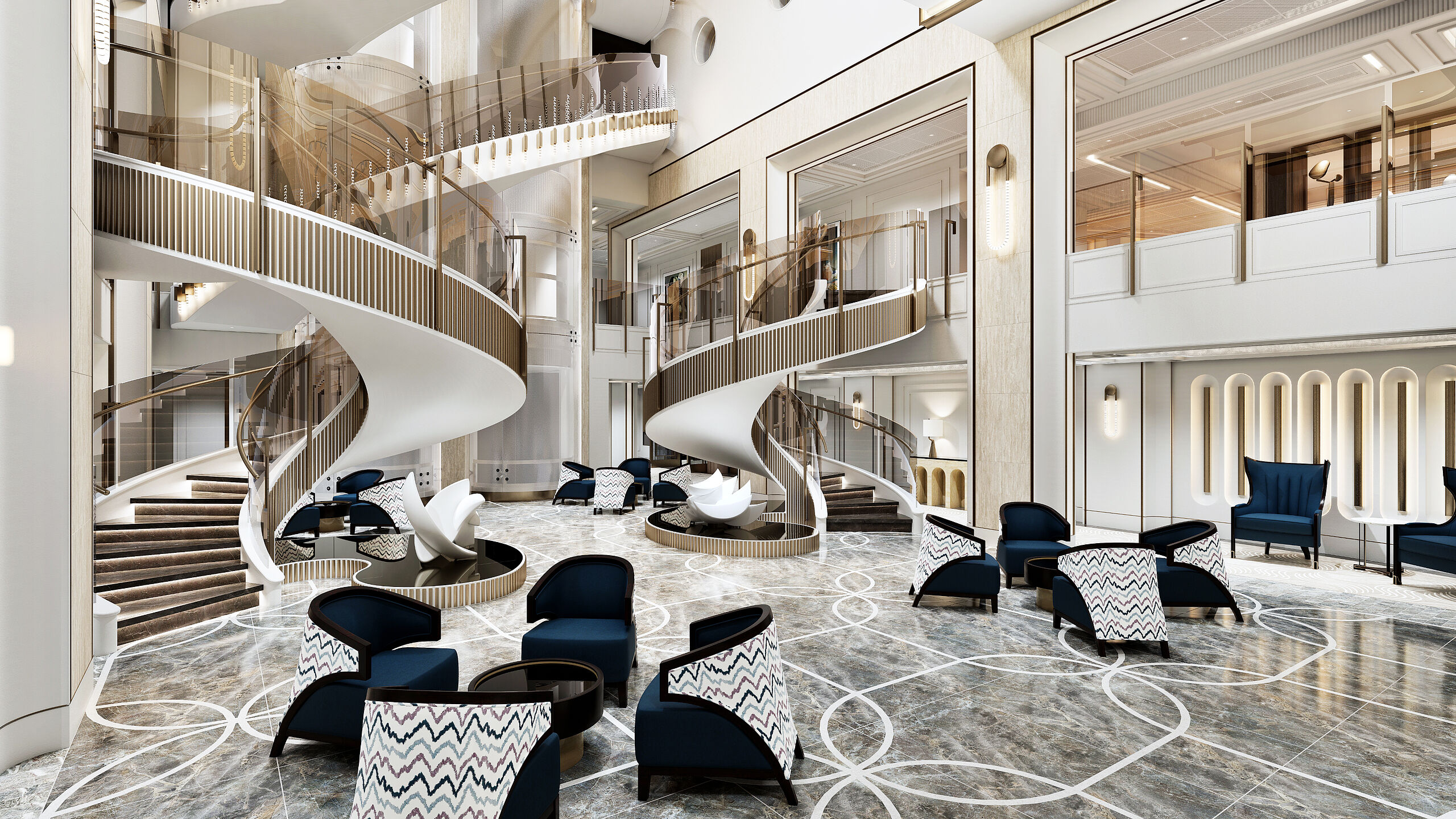 - Bibliothek & Lounges: Ruhe- und Gesprächszonen