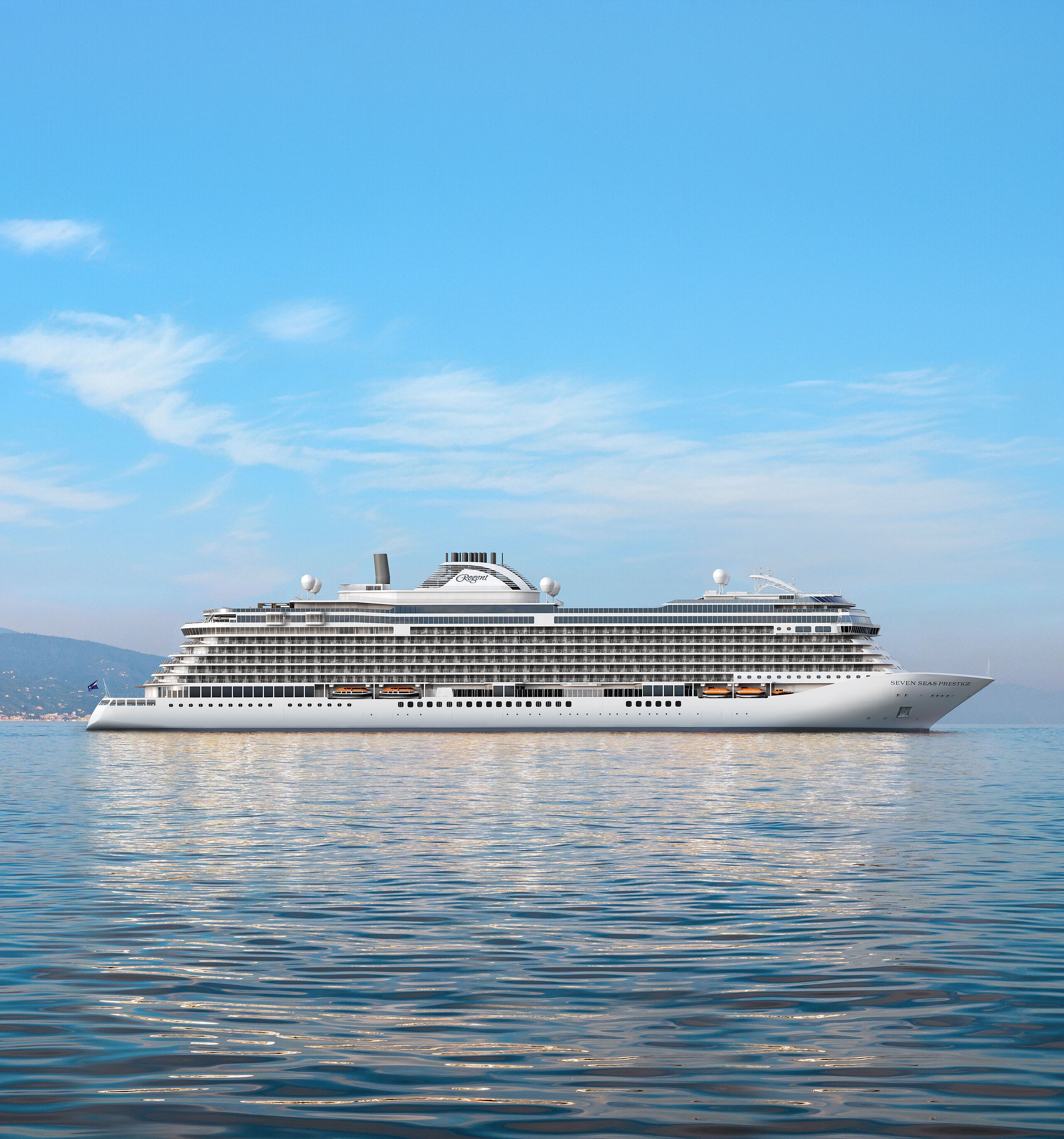 Die Regent Seven Seas Prestige ist ein luxuriöses Kreuzfahrtschiff der Marke Regent Seven Seas Cruises, konzipiert für anspruchsvolle Gäste, die höchste Ansprüche an Komfort, Raum und Service stellen. Mit einer harmonischen Silhouette, großzügigen öffentlichen Bereichen und einem eleganten Interieur vermittelt das Schiff eine exklusive Atmosphäre, die an ein privates Resort auf See erinnert. Die Prestige steht für All-Inclusive-Luxus ohne Kompromisse: nahezu alle Leistungen sind im Reisepreis enthalten, von exquisiter Kulinarik über edle Getränke bis zu Landausflügen und persönlichem Service. Die Architektur des Schiffes verbindet Licht, Raum und Blick auf das Meer in durchdachter Weise und schafft ein Ambiente, das Ruhe, Stil und Entdeckung gleichermaßen fördert.