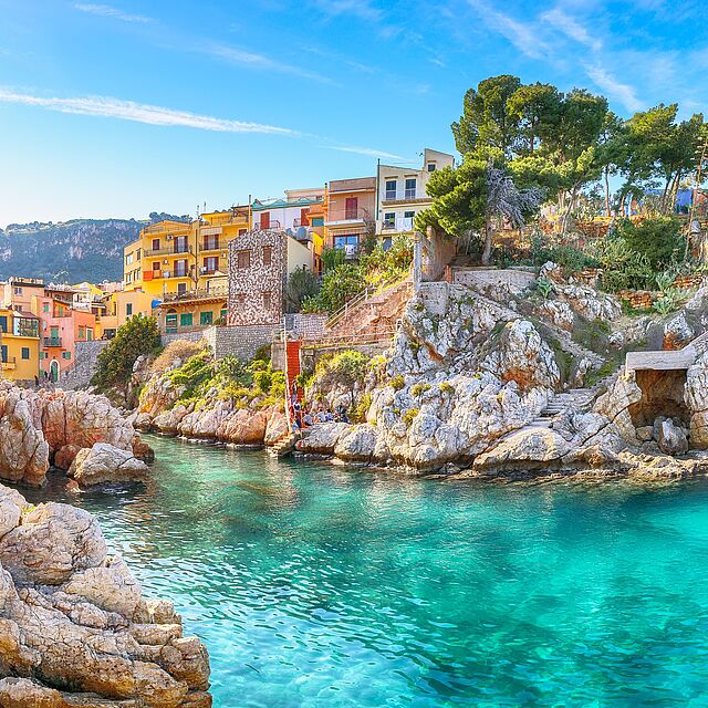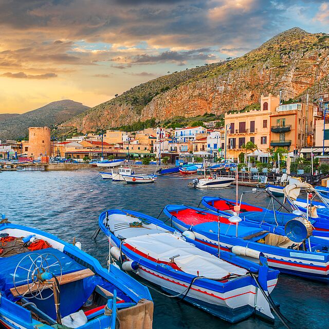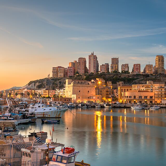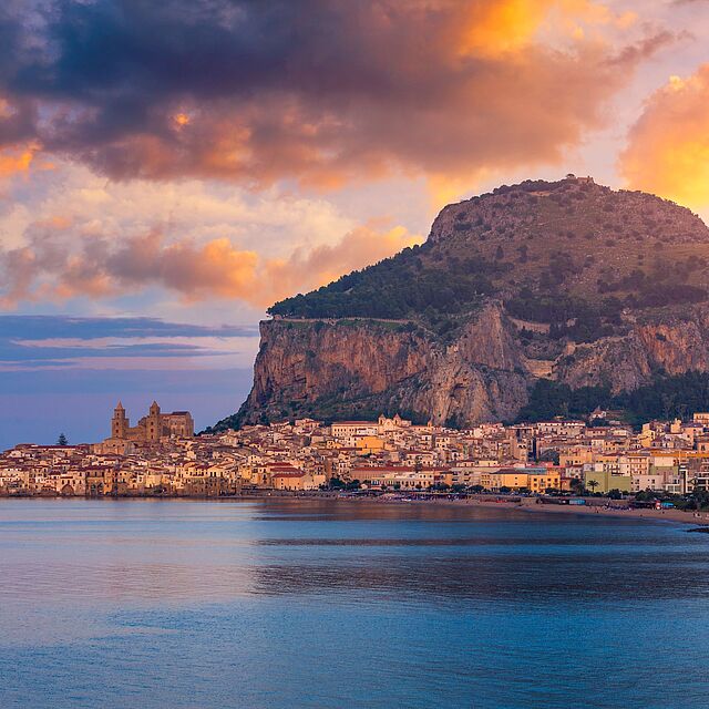 Willkommen in Sizilien! Zitronen, Mandeln, Oliven und Wein, quirlige Städte, uralte Tempel, herrliche Sandstrände und noch viel mehr erwartet Sie auf der größten Mittelmeerinsel. Entdecken Sie die Reize von Palermo, Syrakus und Taormina und wandern Sie hoch oben auf dem Ätna durch die dampfende Kraterlandschaft. Residieren Sie in fürstlichen Hotels, lassen Sie sich von der landestypischen Küche verwöhnen und schnuppern Sie orientalisches Flair im Westen, wo sich die Nähe zu Tunesien auf Märkten und an Hausfassaden widerspiegelt. Wer sein Bild von Italien vervollständigen möchte, muss einfach nach Sizilien kommen. Oder wie Goethe es so schön formulierte: “Italien ohne Sizilien macht gar kein Bild in der Seele. Hier ist erst der Schlüssel zu allem.“ Dieses Paradies wird auch Ihr Herz im Sturm sicher erobern. Erleben Sie unvergessliche Momente voller Magie unter der italienischen Sonne.