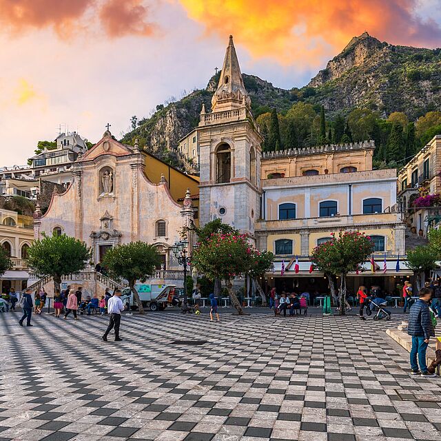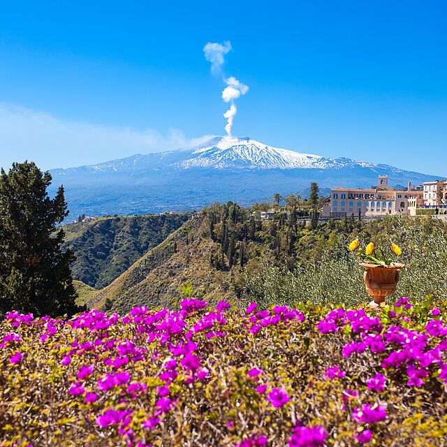 Hoch über dem Ionischen Meer gelegen, eröffnet sich ein Panorama bis hin zum imposanten Ätna. Im antiken Teatro Antico di Taormina wird Geschichte eindrucksvoll lebendig, während die charmante Altstadt mit eleganten Boutiquen und verwinkelten Gassen zum Flanieren einlädt. Willkommen in Taormina! Entdecken Sie in den nächsten Tagen die faszinierende Vulkanlandschaft des Ätna oder genießen Sie die Küste bei einem stilvollen Bootsausflug vorbei an der malerischen Isola Bella. Wandeln Sie auf den Spuren von dem berühmten Klassiker „Der Pate“, erleben Sie Taormina aus der Vogelperspektive bei einem privaten Helikopterflug oder genießen Sie exklusive Weinverkostungen in ausgewählten Weingütern am Fuße des Vulkans. Abends kehren Sie in Ihr elegantes Refugium zurück und lassen die Eindrücke in entspannter, stilvoller Atmosphäre bei einem Dinner mit Blick über den Vulkan ausklingen.