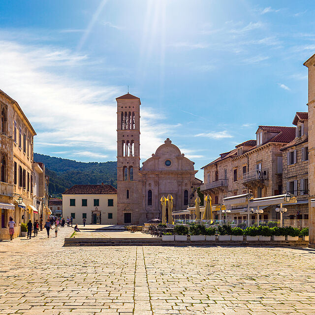 Heute erleben Sie das pure Urlaubsglück auf und vor der Insel Hvar. Nach einem kurzen Transfer im Speedboot erreichen Sie Ihr Hotel, welches in Stari Grad in einer ruhigen Bucht liegt. Schwimmen Sie im kristallklaren Wasser der Adria, genießen Sie die wunderschöne Natur und bummeln Sie durch die Inselhauptstadt. Am nächsten Tag nimmt Sie Ihr privater Guide mit zu einer Inselrunde inklusive Strandpromenade, mittelalterlichem Stadtkern, Renaissance-Schloss sowie dem Wein-, Olivenöl und Honig-Dorf Velo Grablje. Highlight der Tour ist ein Lunch-Special bei einer Familie in Malo Grablje.