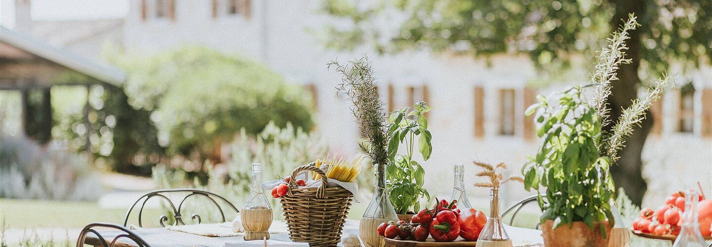 - Entspannung: Ein Glas Wein zwischen Weinreben und Olivenhainen