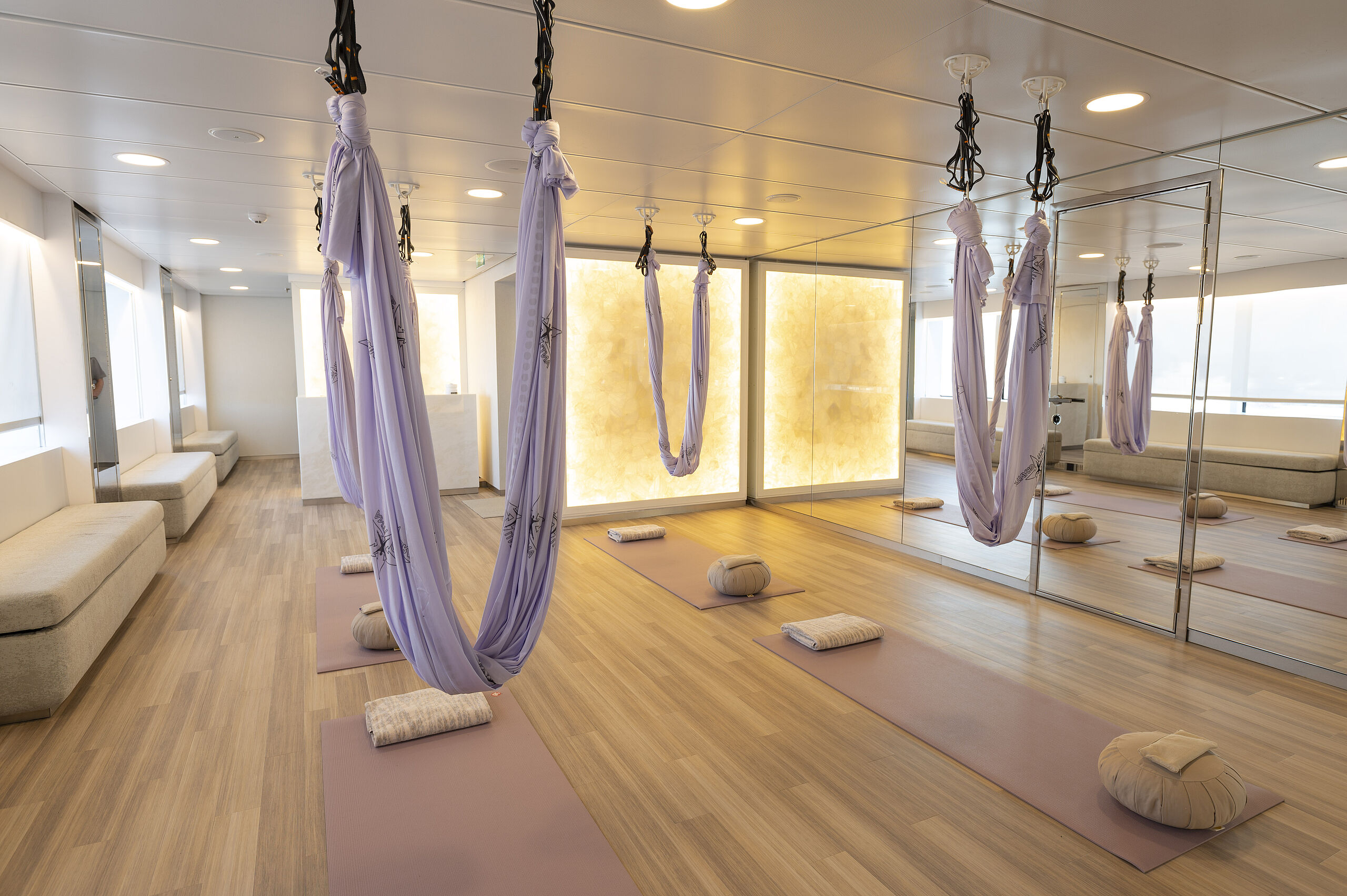 - Panorama-Lounge: Weitläufiger Treffpunkt mit Meerblick für Aperitifs und Sundowner