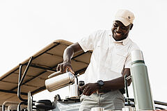 Das Camp erfüllt zudem individuelle kulinarische Wünsche wie private Dinner auf der Veranda der Zelte oder Picknicks inmitten der Natur. Auch Snacks und Getränke stehen jederzeit bereit, sodass keine Entspannungs- oder Beobachtungsphase unterbrochen werden muss.