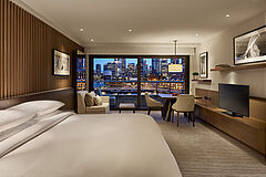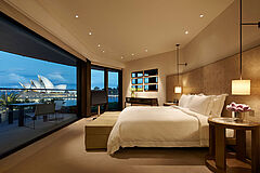 Das Zimmer verfügt über ein Kingsize-Bett und einen Balkon mit atemberaubendem Blick auf die Oper, die Harbour Bridge oder die Skyline Sydneys. Gerne buchen wir Ihnen dieses Zimmer auch mit Twin-Betten.