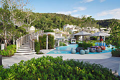 Wer in Krabi nach einem außergewöhnlichen Refugium sucht, findet im Banyan Tree Krabi einen Ort, der sofort begeistert. Hier trifft saphirblaues Meer auf feinen, weißen Sand, dahinter erheben sich dicht bewachsene Dschungelberge – eine Kulisse, die fast unwirklich erscheint.