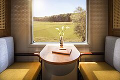 An Bord des The Vietage by Anantara sind die Abteile ganz bewusst auf ein intimes und komfortables Erlebnis ausgelegt: In jedem der zwei luxuriösen Wagen befinden sich sechs private Kabinen, jeweils mit zwei bequemen Sitzplätzen und großen Panoramafenstern, durch die sich die wechselnden Landschaften Zentralvietnams genießen lassen.